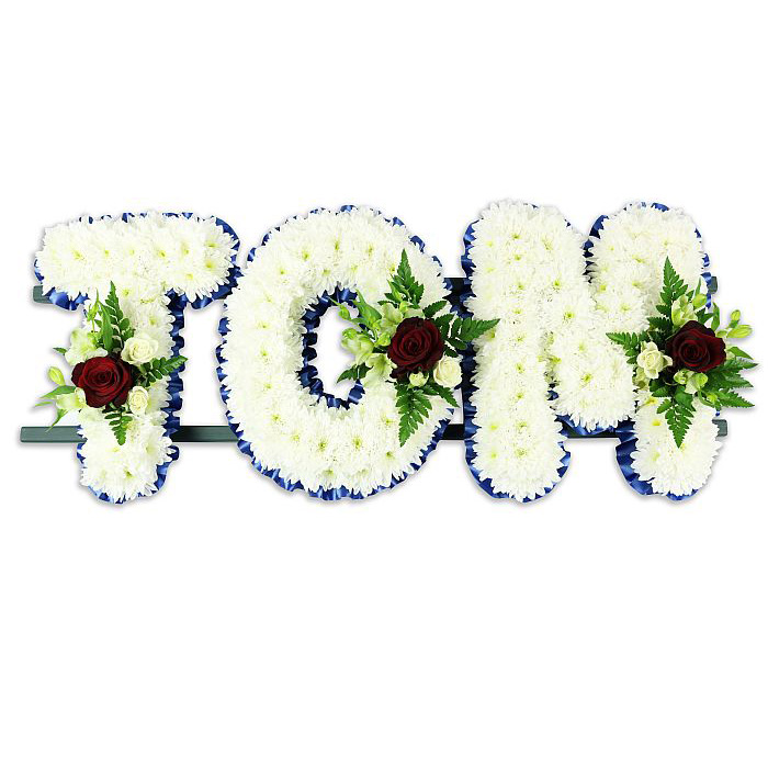 As some flowers are seasonal, we may substitute blooms of similar colour, size and value to maintain the same premium style. Order this personalised TOM funeral tribute online from Flowers Southend on Sea for a reliable, respectful service and timely local delivery, helping you say goodbye with grace and love.