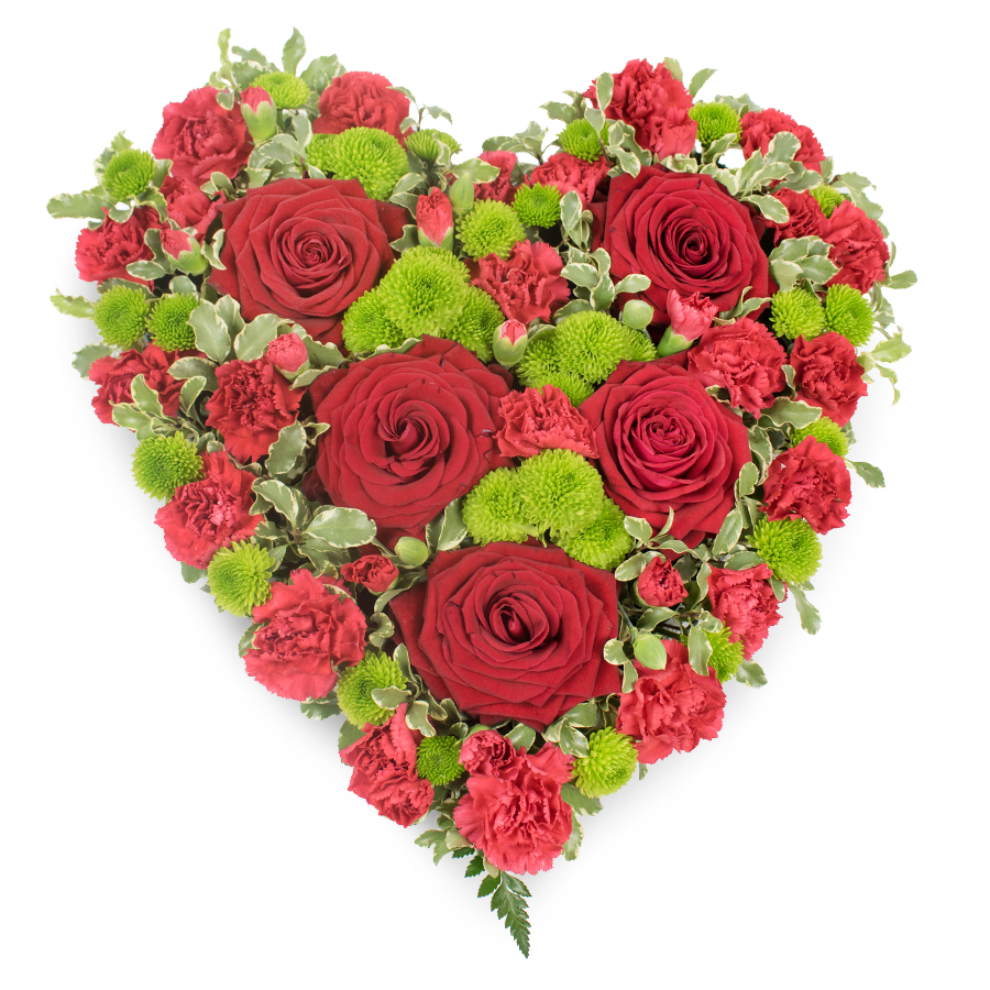 - Flower Selection: Red roses, red carnations, mini green chrysanthemums, pittosporum, and leather leaves.
